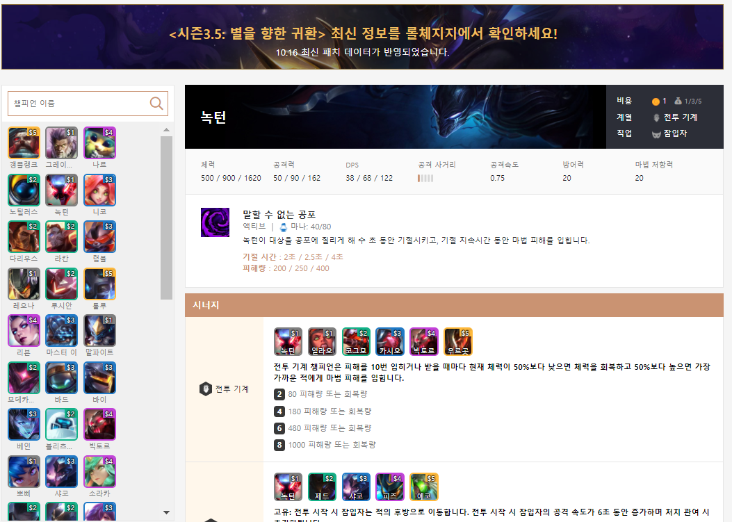 5. 챔피언 정보 확인 (롤토체스 사이트LOLCHESS.GG롤체지지)
