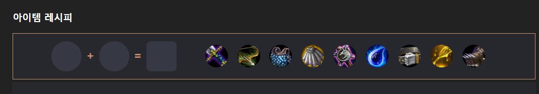 각 국가별로 챔피언별 가장 많이 사용되고 있는 아이템정보를 확인할 수 있습니다.