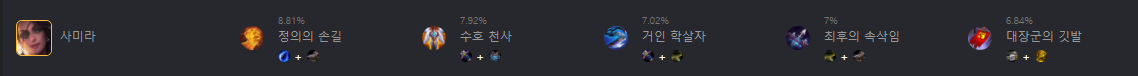2. 5코 챔피언 2성작 + 풀템 (세트, 사미라 둘 중 하나)