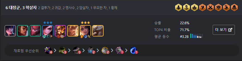 2. 1코챔피언(가렌,니달리) 자연 3성작으로 꿀빨면서 8,9래밸까지 빠르게 진출 후 5코챔(세트, 사미라) 풀템 +2성작
