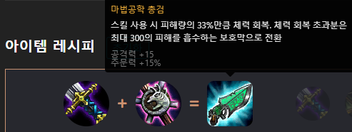 이 덱은 1차적으로 가장 필요한 템이 피흡템이다. 메인 딜러들에게 가장 필수적인 템이다. 사실 거의 모든 덱에 쓰일 수 있는 템들이기 때문에 나왔을 때 바로 만들어 줄 것을 추천한다.