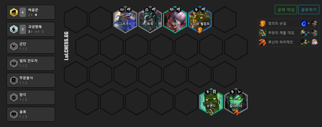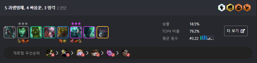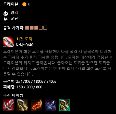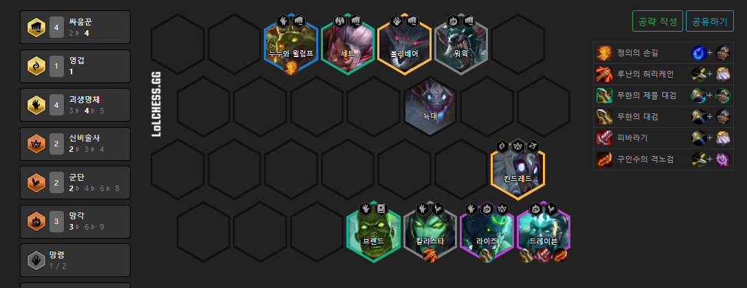 4싸움꾼 빌드업 + 3망각(드레이븐)은 더보기 확인