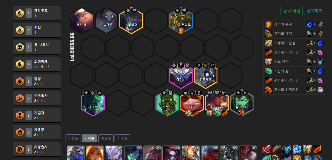 괴생명체 템작을 우선적으로 해주세요. 그 후 서브딜러 템작을 해주시면 됩니다.