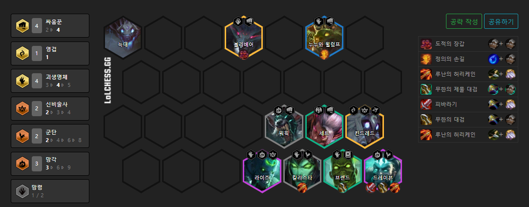 | 롤토체스[TFT] 시즌5 공략 4재생술사 3악의여단 (0) | 2021.06.03 |